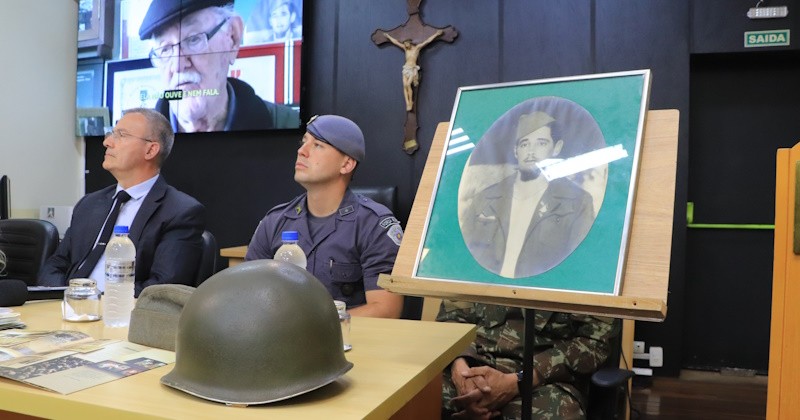 Ao entregar a homenagem, Coronel Prado falou sobre a atuação de Marino na guerra e destacou que o pracinha foi testemunha viva do período. “Mais do que um soldado, José Marino foi um guardião da memória. Em vida, compartilhou suas experiências com escolas, instituições e a comunidade”, disse.