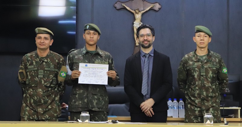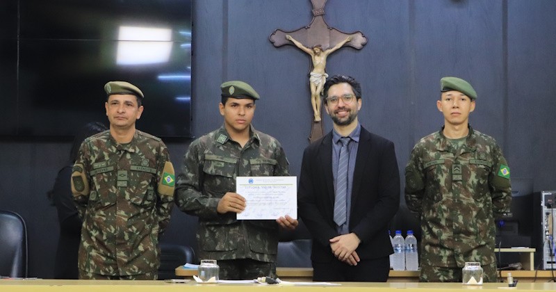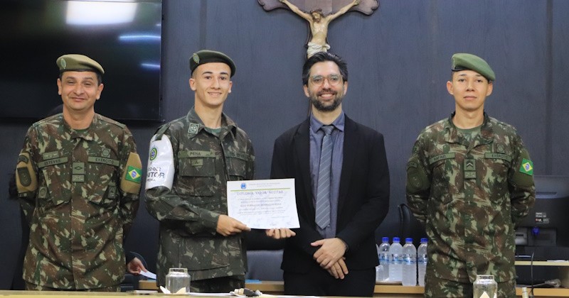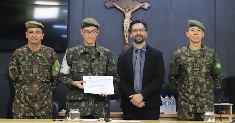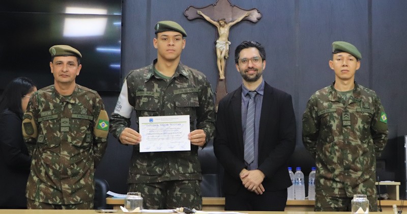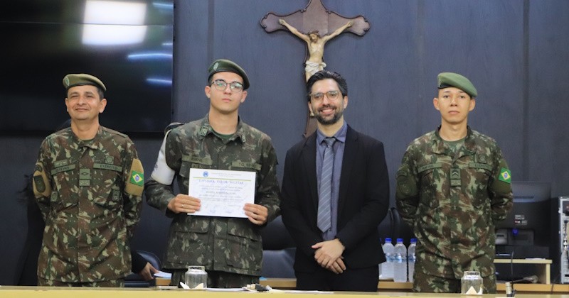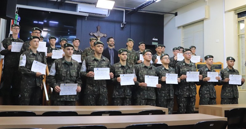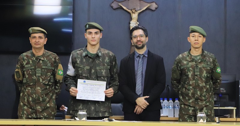 A solenidade, que homenageou 25 jovens indicados pelos superiores hierárquicos, foi conduzida pelo vice-presidente da Casa de Leis, vereador Michel Kary (PL). O evento contou com a presença do chefe de Instrução do TG 02-002, subtenente João Dias Esteves; do subtenente Antonio Cesar Risso, que assumirá a chefia de instrução do TG 02-002 no biênio 2026-2027; do instrutor do TG 02-002, 1º sargento Rafael Amâncio de Souza; além de familiares dos homenageados.