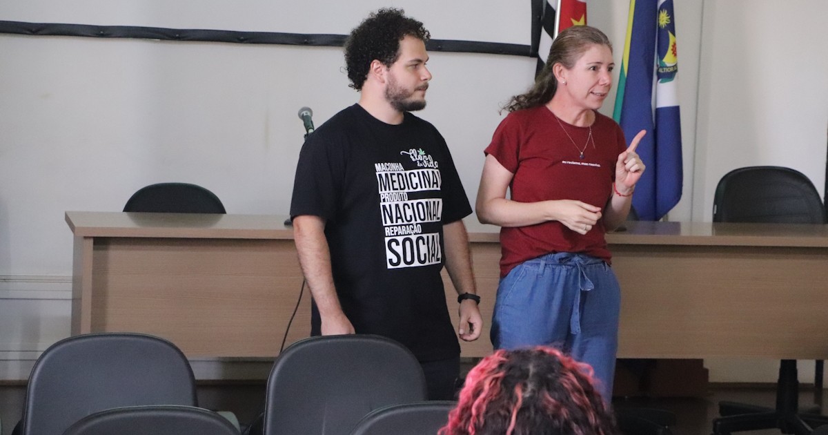 O Plenarinho da Câmara de Araraquara recebeu na tarde desta quinta-feira (16), o minicurso “Desmistificando o uso terapêutico da maconha”, com Sven Zalewski, doutorando da Faculdade de Ciências Farmacêuticas (FCF) da Universidade Estadual Paulista (Unesp) Araraquara. A atividade faz parte da programação da IV Semana Municipal em Defesa da Cannabis Medicinal “Antonio Luiz Marchioni – Padre Ticão” e foi aberta pela presidente da Frente Parlamentar em Defesa da Cannabis Medicinal, vereadora Fabi Virgílio (PT).