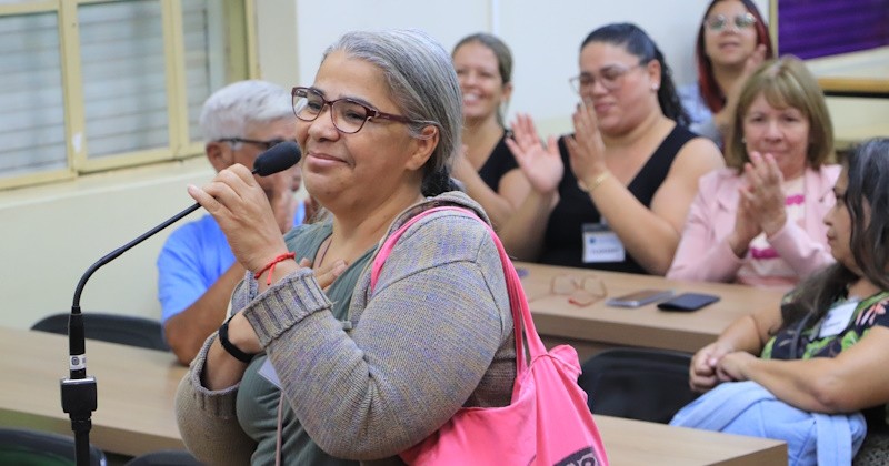 Maria Alice Zacharias, de São Carlos (SP), foi uma das pessoas a ir à tribuna. Ex-cortadora de cana-de-açúcar, retomou os estudos por meio da EJA e hoje atua na Secretaria da Educação da cidade e coordena o Movimento de Alfabetização de Jovens e Adultos (Mova).