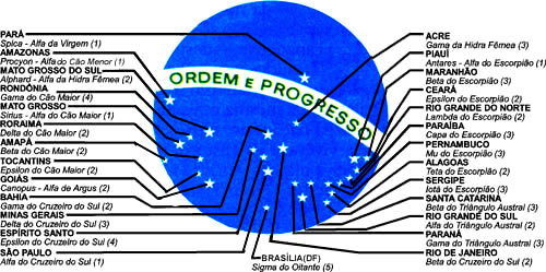 II – A colocação das estrelas, da faixa e da legenda Ordem e Progresso no círculo interior obedecerá às mesmas regras estabelecidas para a feitura da Bandeira Nacional.