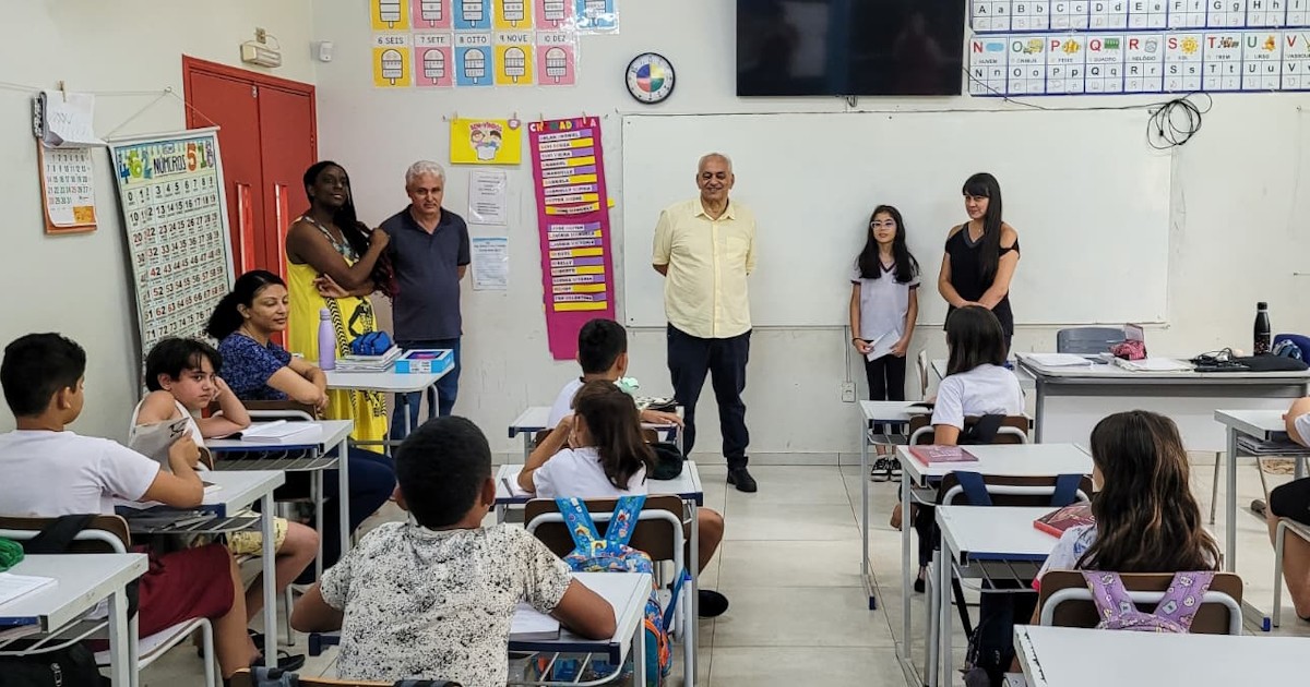 “Parabenizo a professora Ana Carolina Cyrene Cordano, do 5º ano E, pela importante atividade de exercício da cidadania, e todos e todas as alunas nas pessoas da Laura e da Letícia, que me entregaram as cartas. Fomos muito bem recepcionados pela Flávia Maria Gonçalves Santana, coordenadora pedagógica; Patrícia Daiane Donofre, diretora; e Chiquinho Paiva, vice-diretor”, completa.