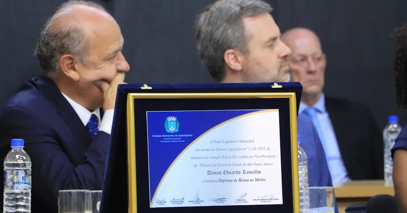 A Câmara Municipal realizou, na noite desta sexta-feira (5), a entrega do Diploma de Honra ao Mérito a Dimas Ramalho, vice-presidente do Tribunal de Contas do Estado de São Paulo.