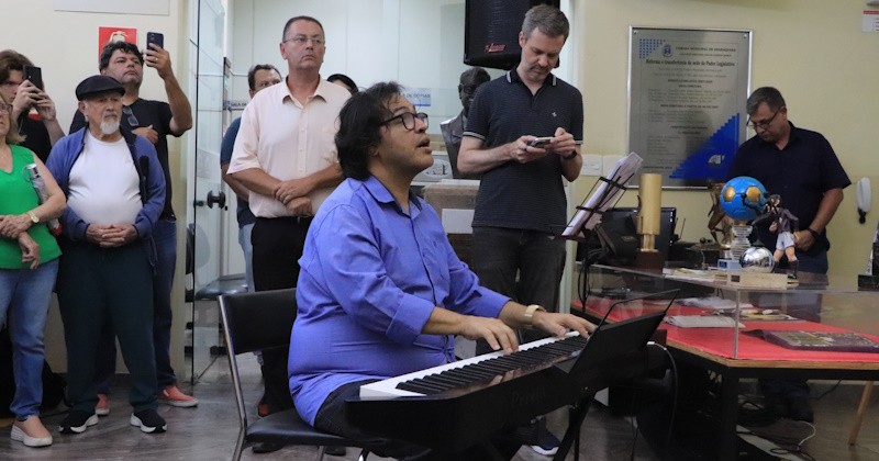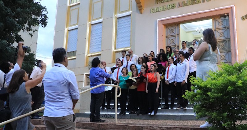 A Câmara Municipal recebeu, na noite desta segunda-feira (8), uma apresentação natalina do Coral da Uniara. Realizado no saguão da Casa de Leis, a abertura do evento foi anunciada pelo presidente da Câmara, Rafael de Angeli (Republicanos).