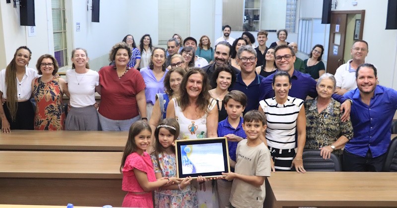 O Plenário da Câmara recebeu, na noite de sexta-feira (6), a solenidade de entrega do Prêmio “Magali Aparecida Merola” – Artista Destaque 2025. Em sua quarta edição, a honraria homenageou a atriz Maria Bernadete Passos.