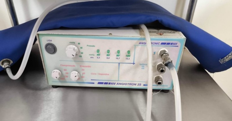 Outro pronto mencionado no documento é quanto ao equipamento Angiotron, utilizado na fisioterapia para tratamento de disfunções circulatórias e vasculares, mas que está fora de uso.
