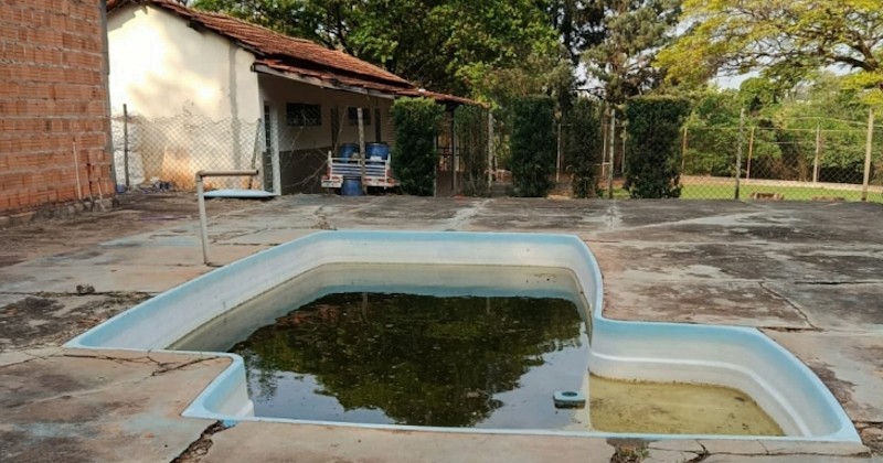 Parte da área está em mau estado de conservação, com acúmulo de entulhos e piscina abandonada. Há registro de atividades de futebol, embora sem movimentação no momento.